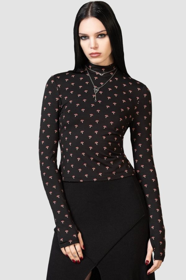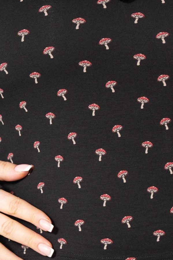 – Statement all over mushroom print.