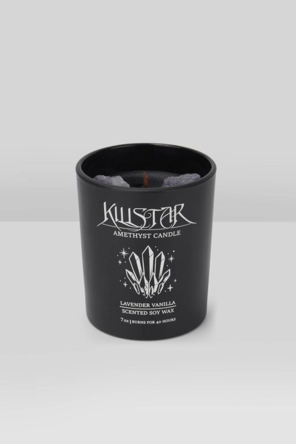 With distinctive KILLSTAR branding, Soy wax with Amethyst Crystals. Container is 100% Glass. Imported.